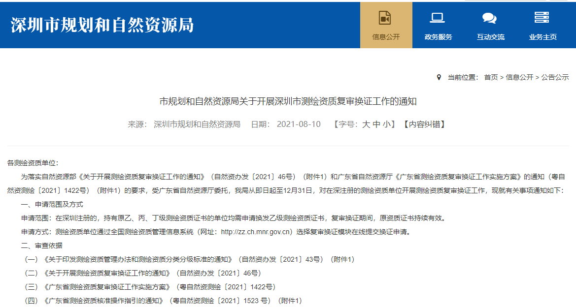 深圳市規劃和自然資源局關于開展深圳市測繪資質復審換證工作的通知